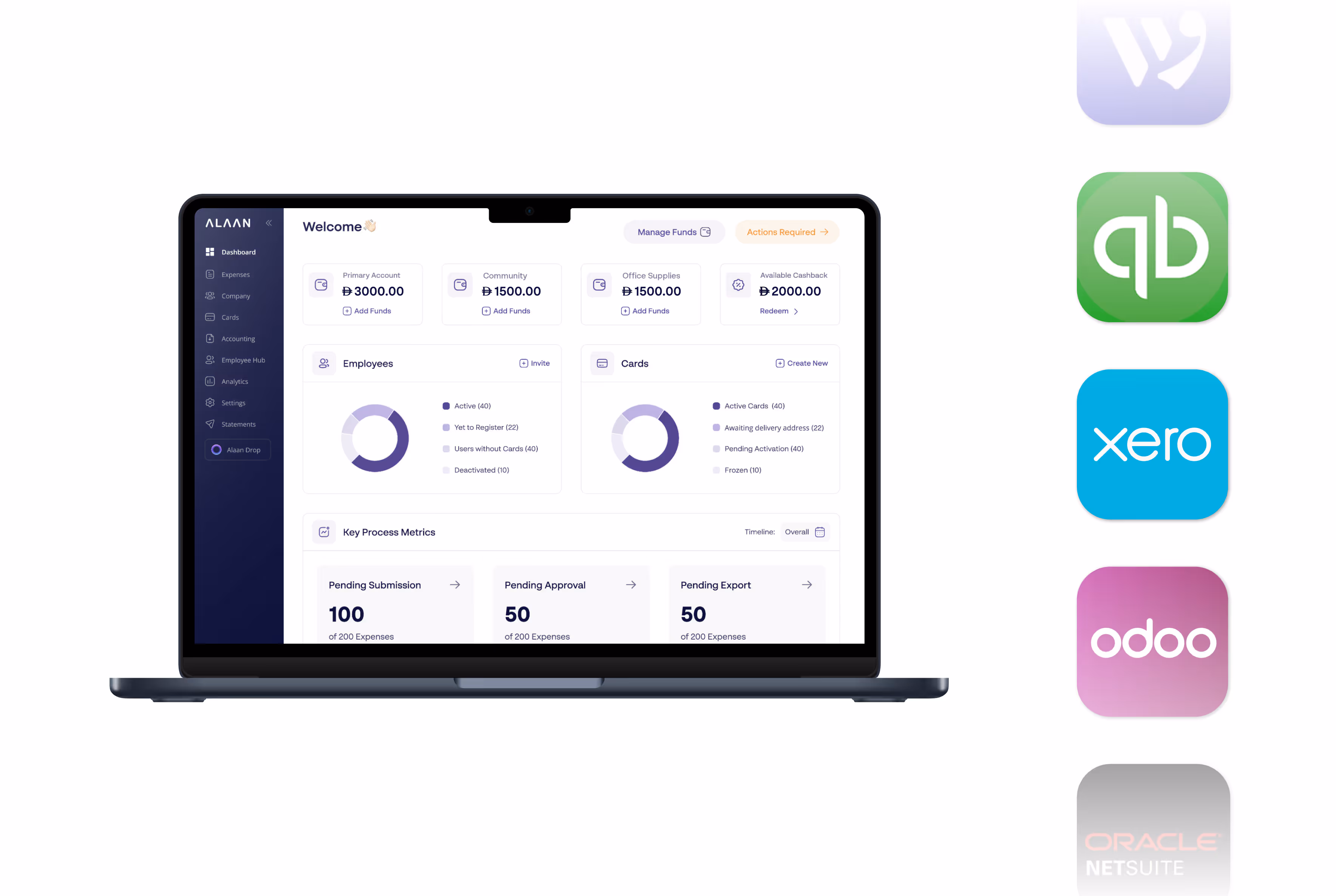 Alaan integrates with all major accounting tools & ERPs to auto-export expense data to accounting books.