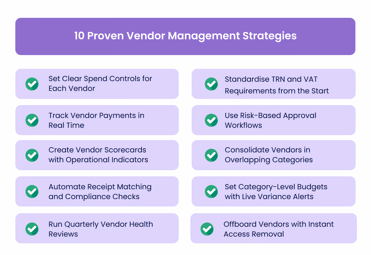 Vendor management works best when performance, compliance, and spend visibility support each other, not pull teams in different directions. And with vendor networks expanding and UAE regulations getting stricter, the organisations that stay ahead are the ones that keep things clear, consistent, and proactive rather than fixing issues at month-end.