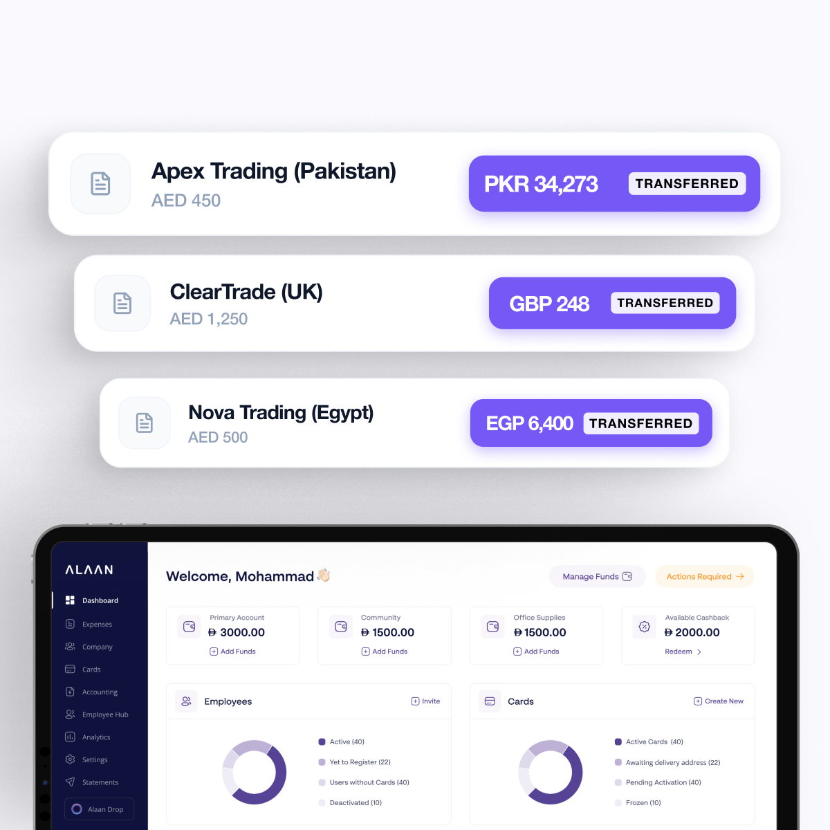 Transfer timelines depend on the payment route, submission cut-off times, and receiving bank processing. Rather than fixed timelines, Alaan focuses on making payment status and outcomes visible throughout the process.