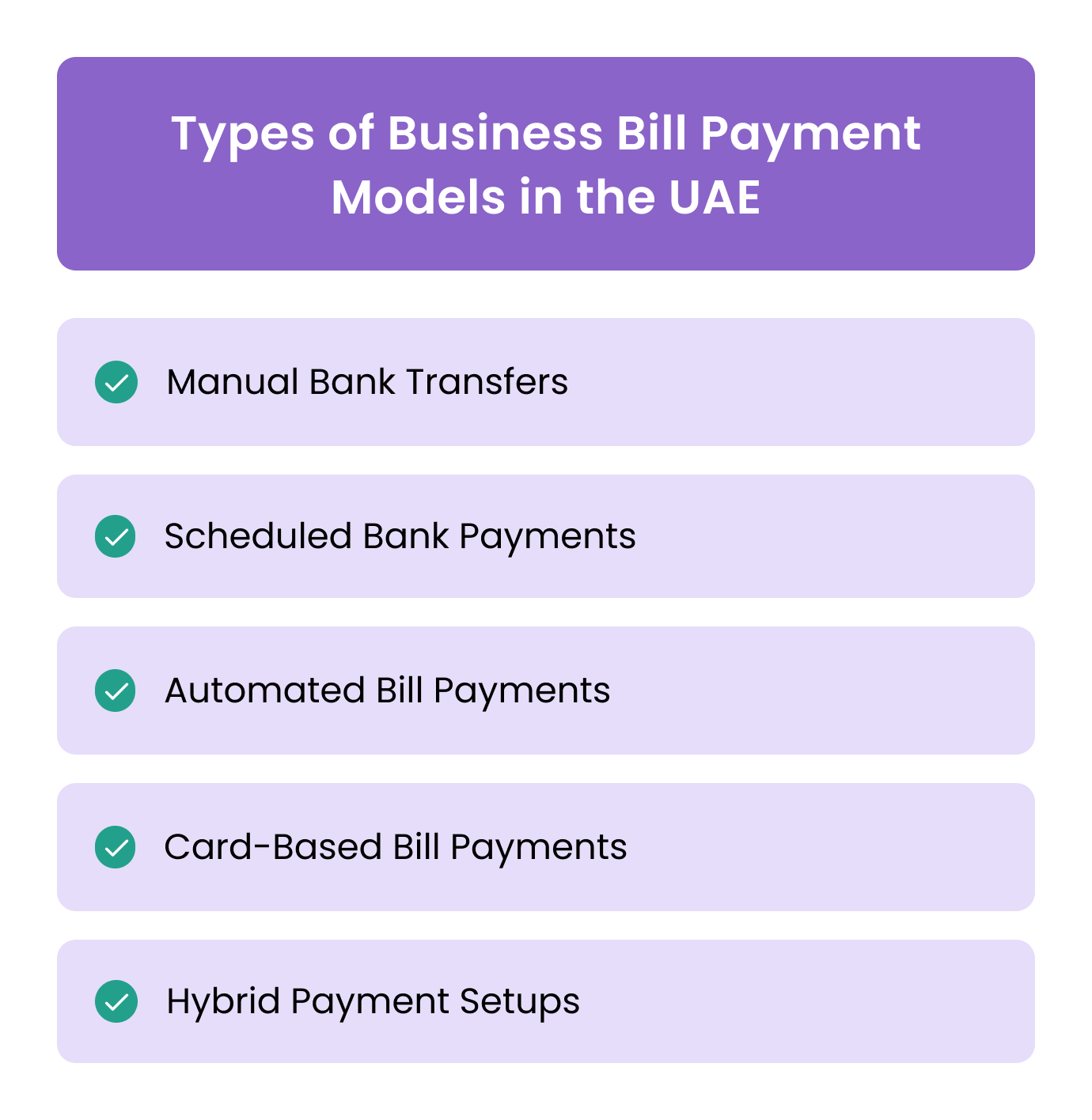 Finance teams in the UAE usually rely on a mix of bill payment models rather than sticking to just one. Each model affects control, cash timing, and risk in its own way, which makes payment choice a governance decision.