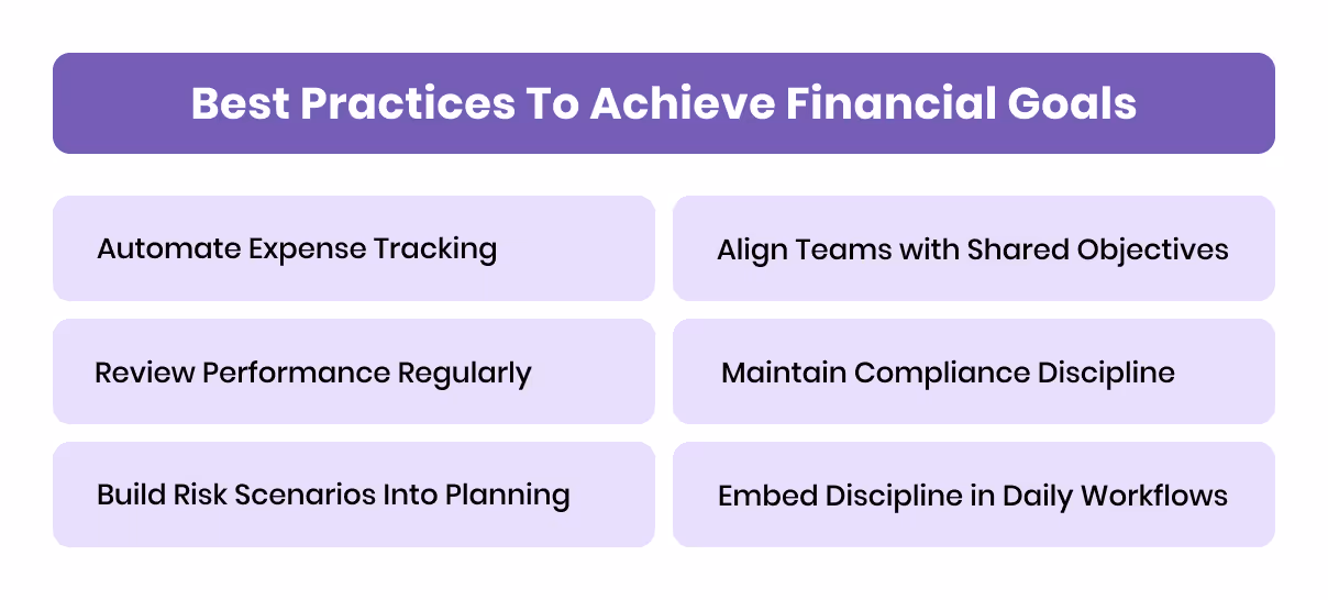 Defining financial goals is only the first step. Achieving them requires structured systems, consistent monitoring, and the right tools. For UAE businesses, where compliance deadlines and cash flow challenges add extra pressure, the following practices help keep targets on track.