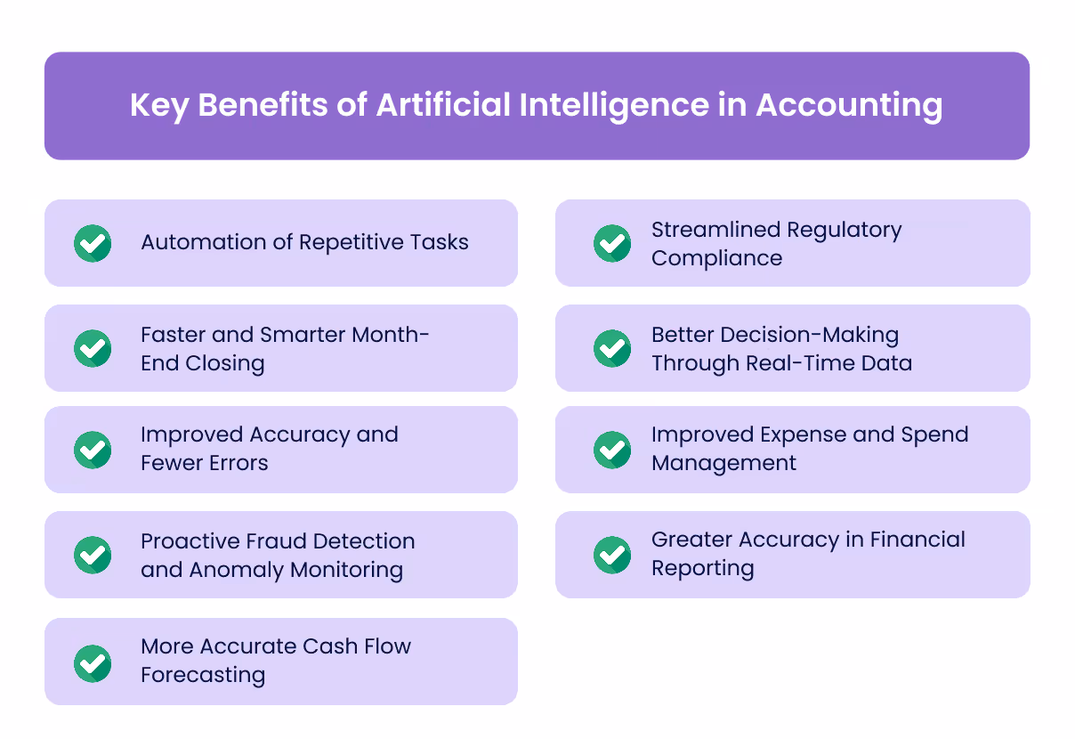 Below are the most valuable benefits of AI in accounting for UAE-based finance teams: